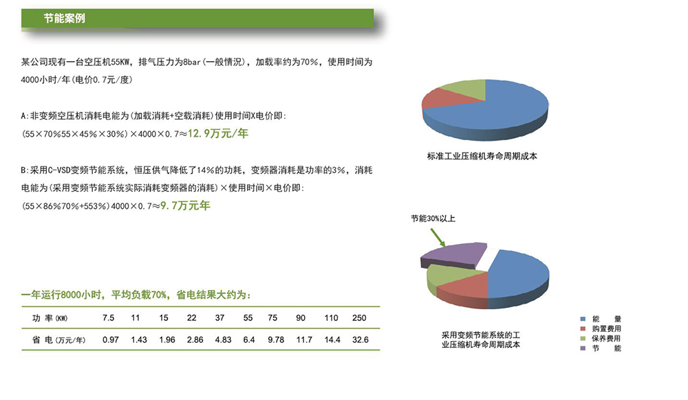 變頻節能系統,是針對中低負載的壓縮機進行變頻節能技術配置,以不改變原有系統為前提,對壓縮機變頻升級,